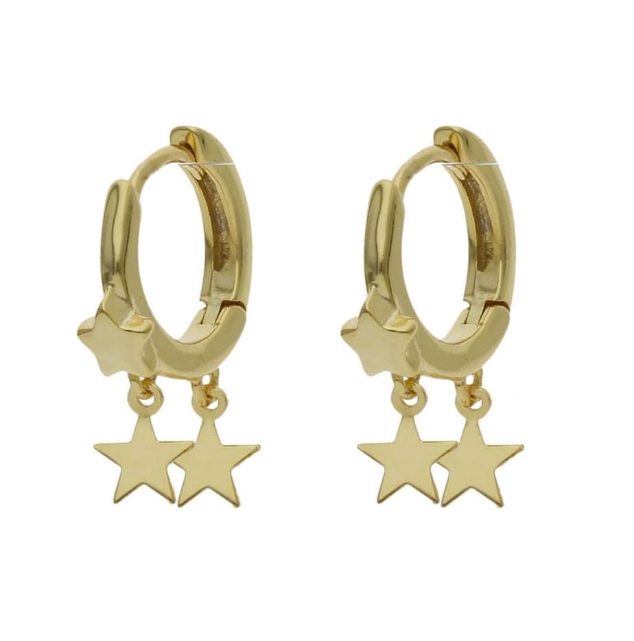 Con baño de oro, Estrella tallada y dos abalorios colgando en forma de Estrella también.