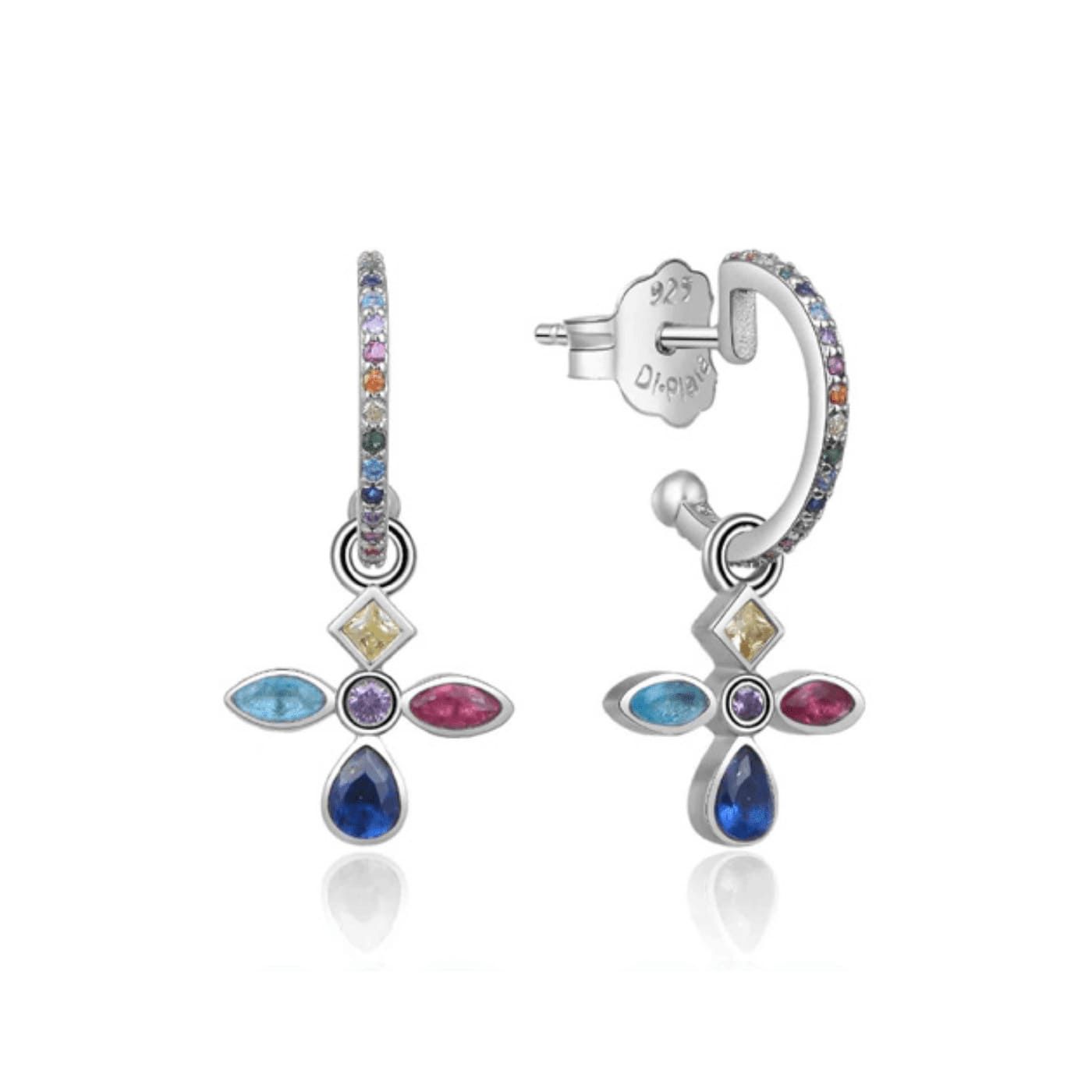 Con circonitas de color, cierre a presión y colgante que inluye una cruz de circonitas.