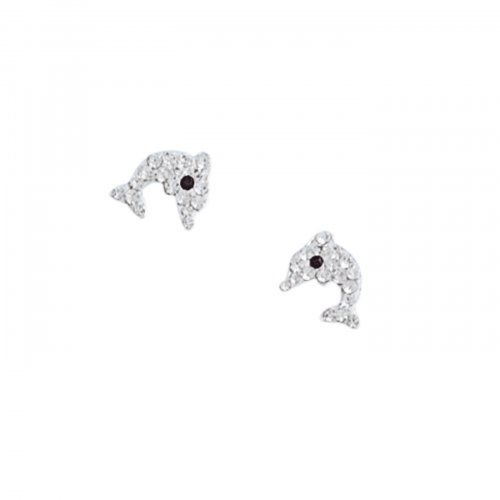 Pendientes con circonitas en forma de Delfín en Plata de 1ªley, 925 mm.
