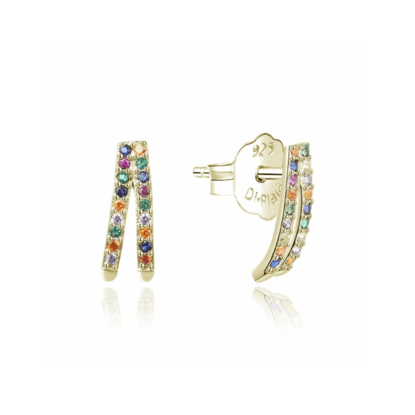 Con baño de oro, circonitas de color engastadas y cierre a presión.