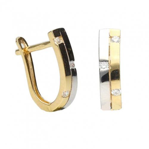 Pendientes Bicolor, con Circonitas engastadas, combinada en Oro Amarillo y Blanco de 18kts, 1ªLey.