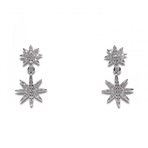 Pendientes semilargos con estrellas y circonitas, de plata de 1ª ley, 925 mm.