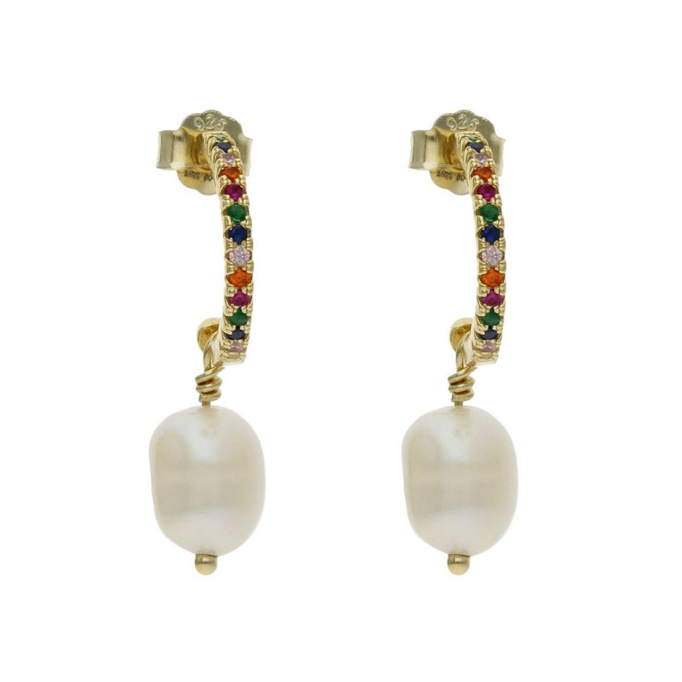 Bañados en oro, con cierre a presión, charms de Perlas Irregulares y circonitas de color.