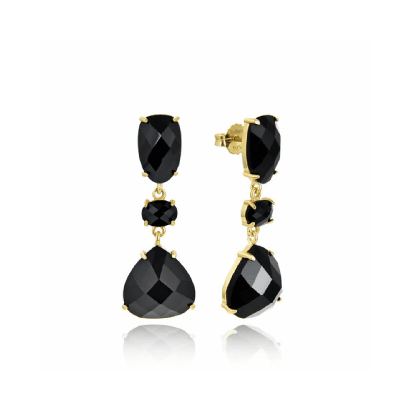 Con baño de oro, símiles de piedra Onyx engastadas y cierre a presión.