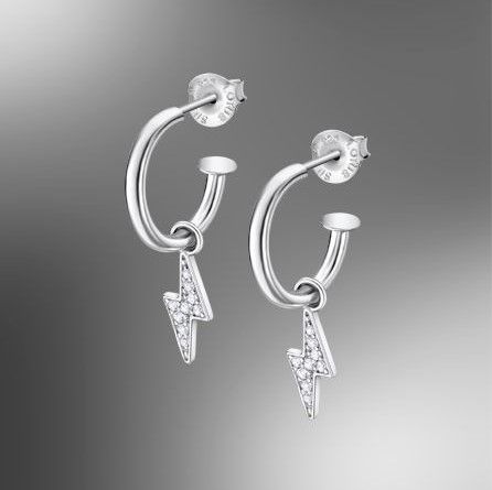 Pendientes de Aro con Charms en forma de Rayo, en Plata de 1ªLey, 925 mm.