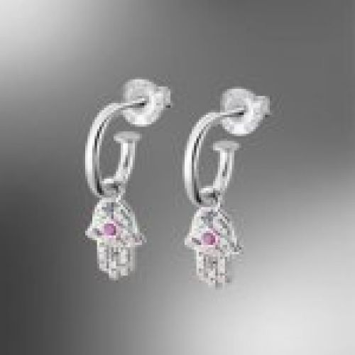 Pendientes de la Mano de Fátima, de Medio Aro con charm, en Plata de 1ªLey, 925 mm.