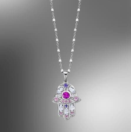La "mano de Fátima", o también llamada "Jamsa" interpreta bendiciones, poder y fuerza. Además ofrece protección contra el mal de ojo y está visto como un amuleto protector. El pueblo árabe solía ponerla en las puertas de las casas para proteger los hogares y familias; también añadir que el cinco es el número considerado de la buena suerte en su cultura, puesto que los cinco dedos del Jamsa tienen el poder para proteger.