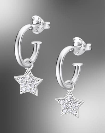 Con charms en forma de Estrella, circonitas engastadas, cierre a presión y 9 mm de diámetro de aro.