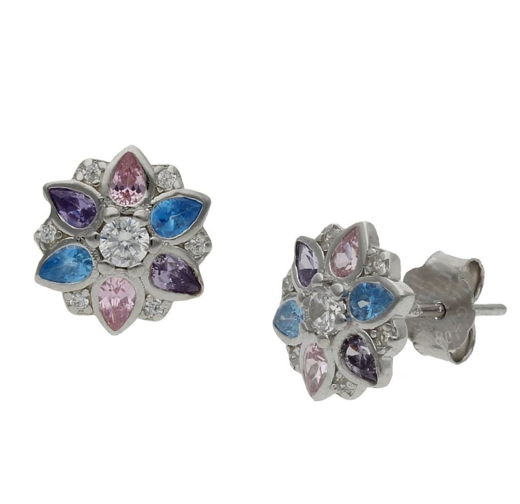 Pendientes con forma de flor, en Plata de 1ª ley, 925 mm.
