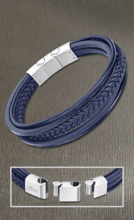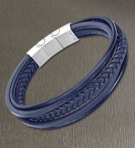 Pulsera Trenzada de Cuero Azul, y cierre de Acero.