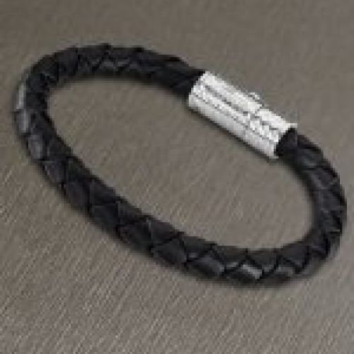 Pulsera Trenzada de Cuero Marrón, con cierre de Acero Tallado.
