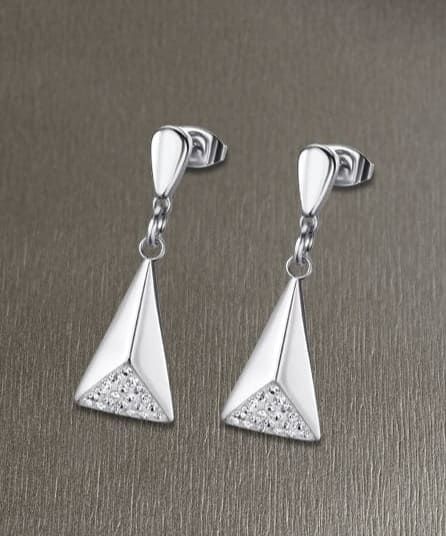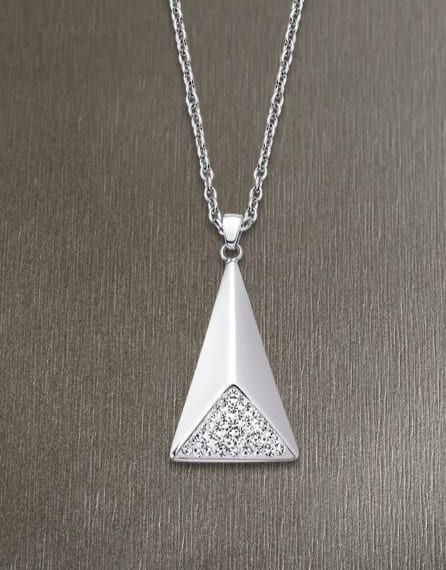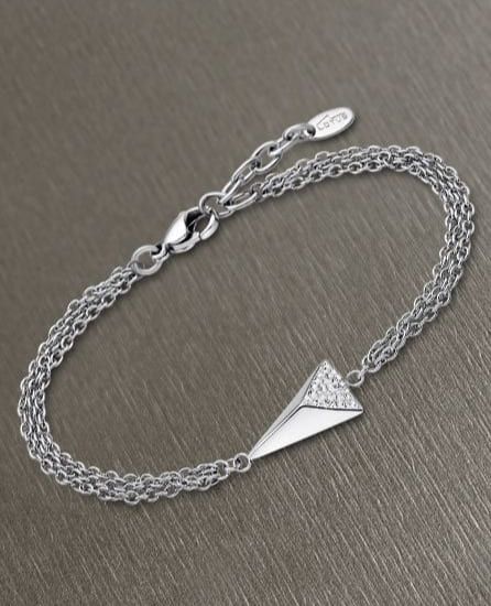 Pulsera de Acero, con triple cadena y motivo central triangular, en él lleva circonitas engastadas.