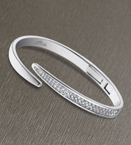 Pulsera Rígida de Acero, con circonitas engastadas.