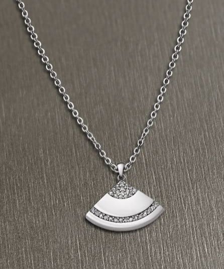 Pulsera de acero, con 3 abalorios en forma de Abanico y circonitas engastadas.