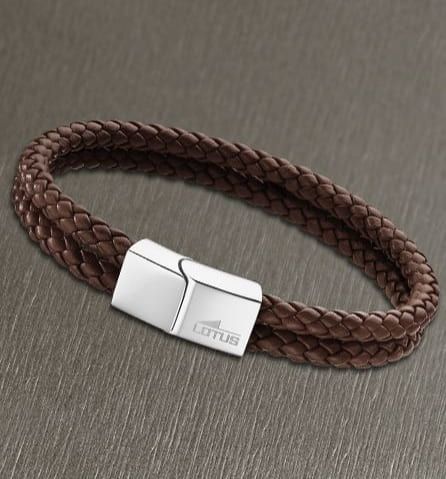 Pulsera de Cuero Marrón Trenzado, con cierre en Acero.