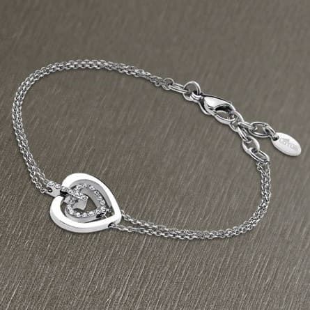 Pulsera con Doble Cadena, en Acero, con motivo central de Corazón.