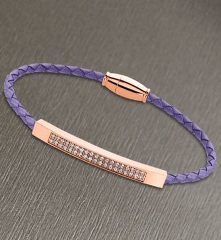 Pulsera Trenzada de Cuero Lila, con adornos y cierre en Acero.