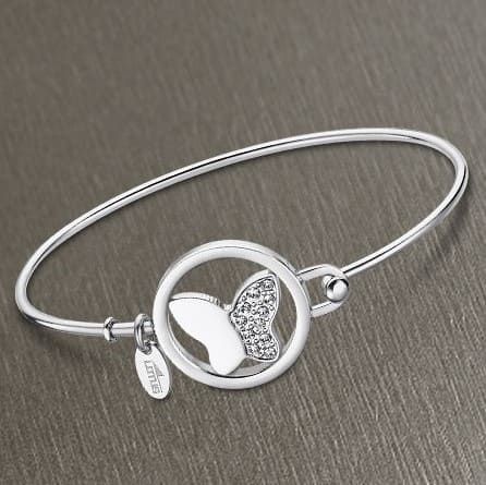 Con motivo central de mariposa, circonitas engastadas y un contorno de muñeca de 6,46  cm de diámetro.
