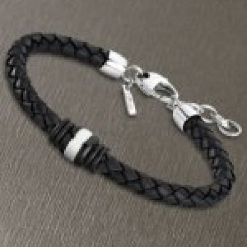 Pulsera Trenzada de Cuero Azul, con cierre y motivos de Acero, combinado con ip negro y azul.