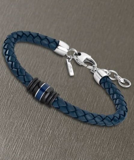 Pulsera Trenzada de Cuero Negro, con cierre y motivos de Acero, combinado con ip negro.