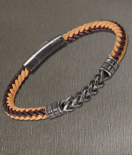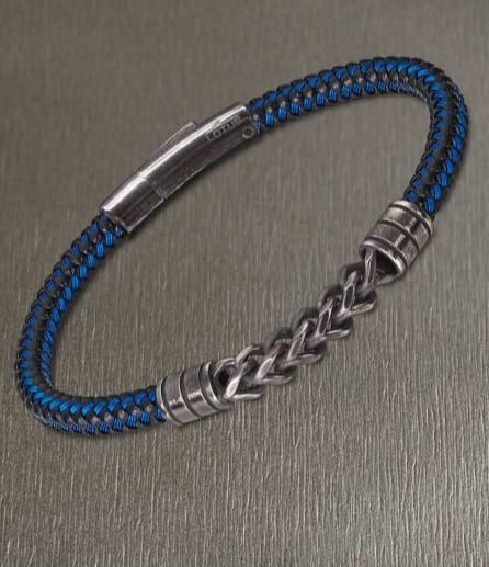 Pulsera de Cuero Trenzado en color azul y negro combinada con acero envejecido.