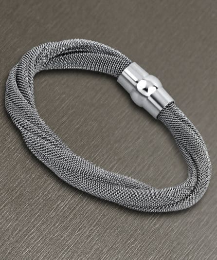 Pulsera de Acero, con malla retorcida y 19 cm de largo.