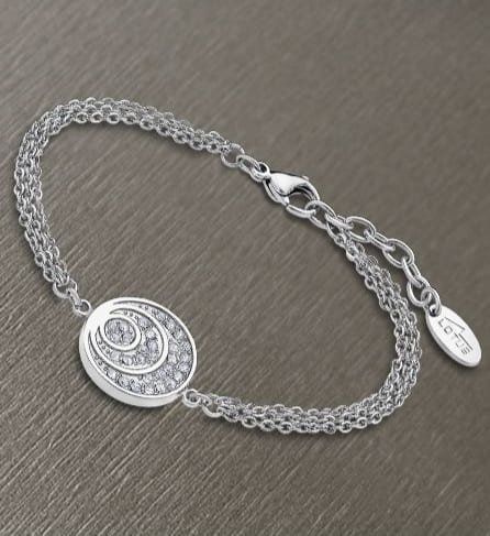 Pulsera de acero, con motivo central redondo y circonitas engastadas.