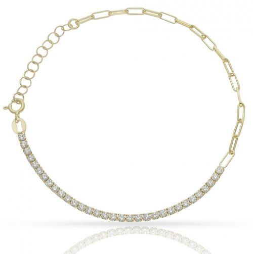 Pulsera de eslabones combinados con hilera de circonitas engastadas, en plata de 1ª ley, 925 mm.