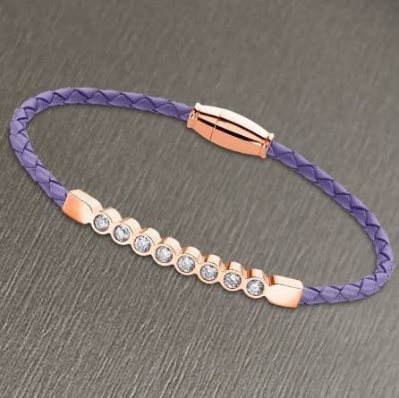 Pulsera Trenzada de Cuero Lila, con adornos y cierre en Acero.
