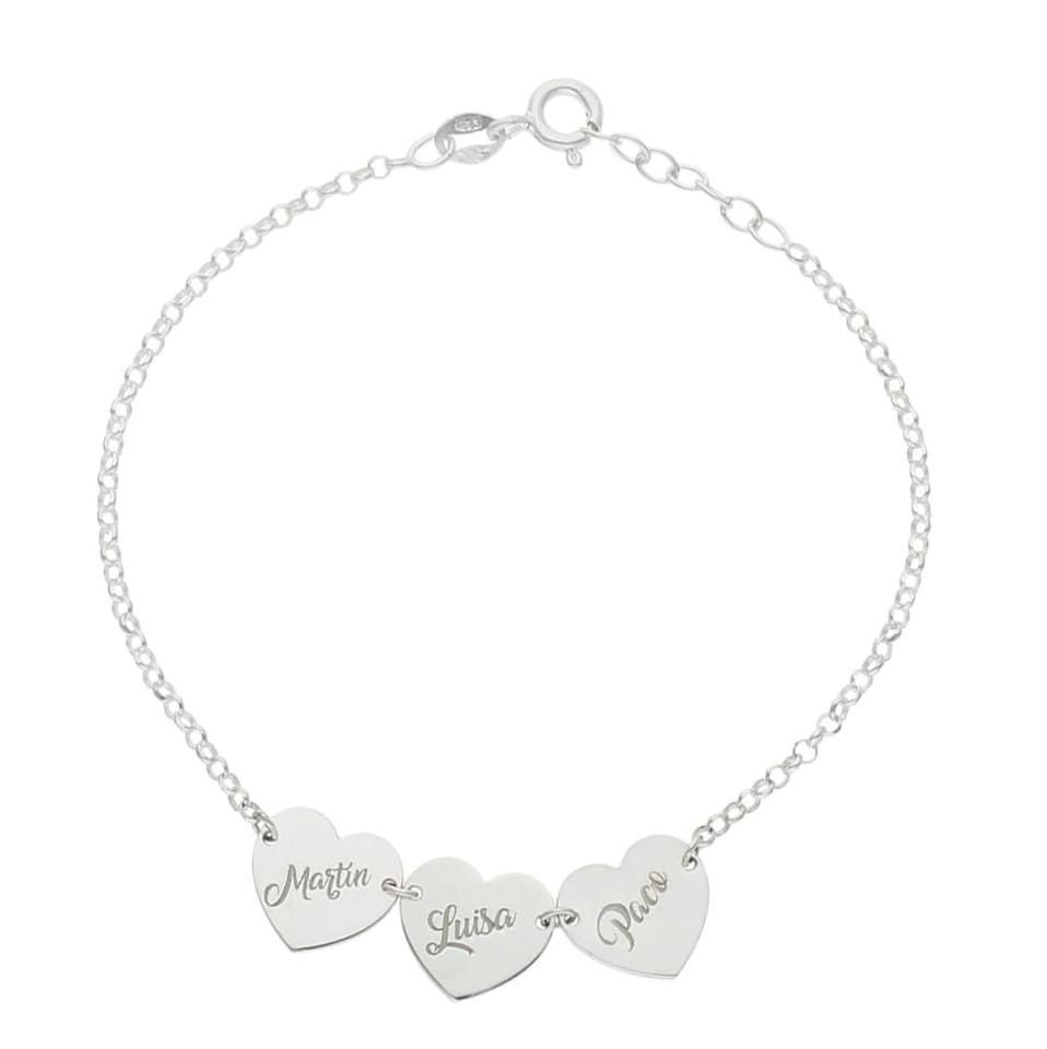Indicar en la parte de abajo en "Personalización" los corazones que desea que lleve la pulserita, y el grabado personalizado que llevará cada corazoncito escribiéndolo en "Información de mi producto personalizado".