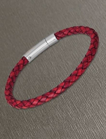 Pulsera Trenzada de Cuero Rojo, con cierre en Acero.