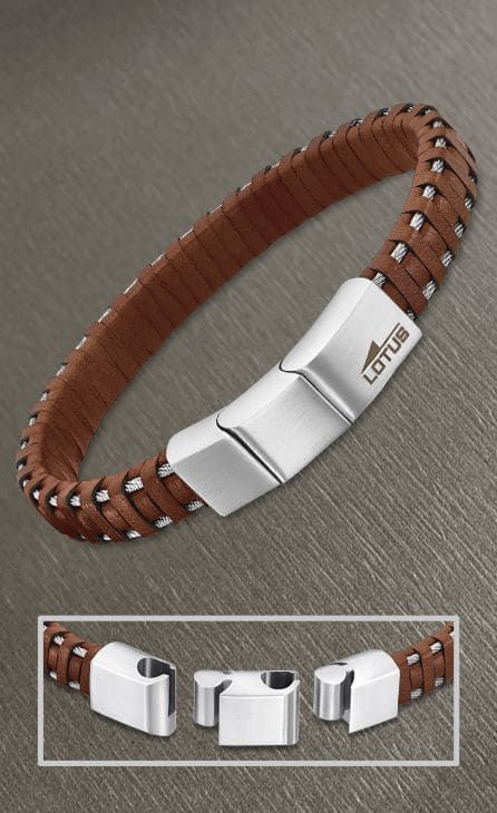 Pulsera Trenzada de Cuero Marrón, con adornos y cierre en Acero.