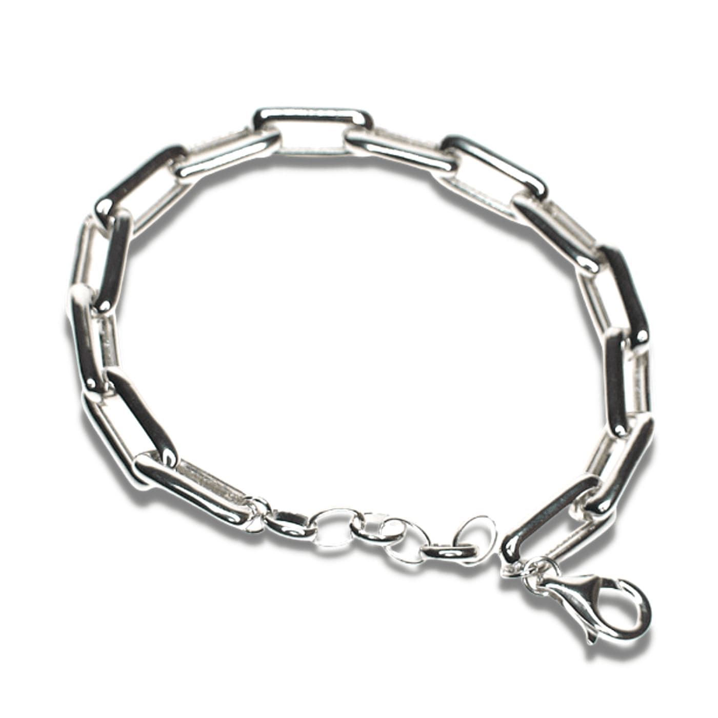 Pulsera con eslabones rectangulares, en plata de 1ª ley, 925 mm, con baño de rodio.