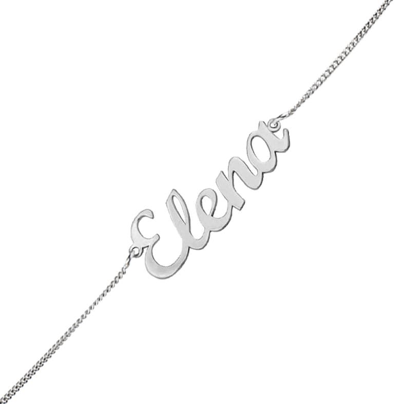 Para realizarla con cualquier nombre que desee; lleva un tipo de letra inglesa, el alto de la primera letra mayúscula es de 10 mm, e incluye cadena rolot diamantada de 1,50 mm de ancho y 19 cm de largo.