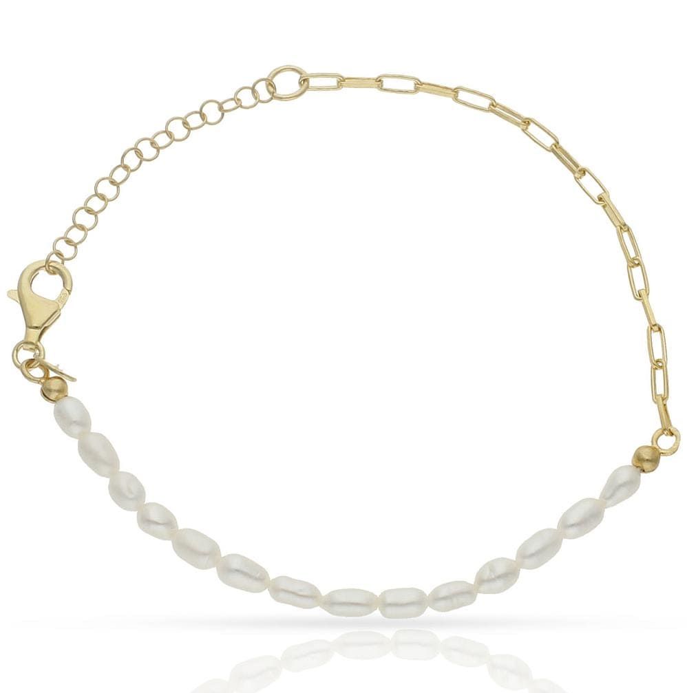 Pulsera de eslabones combinados con perlas, en plata de 1ª ley, 925 mm.