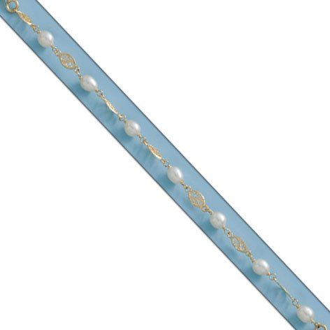 Pulsera con Perlas Jofa y eslabón calado, en Oro de 18kts, 1ªLey.