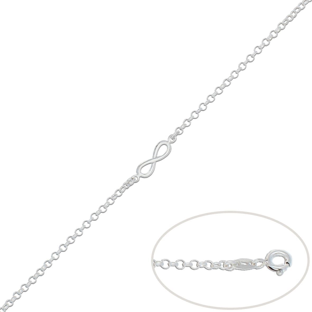 Con el símbolo del infinito entre una cadena rolot con un ancho de 2 mm y un largo de 18,50 cm.
