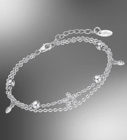 Con circonitas engastadas y 19 cm de contorno de muñeca, ajustable.