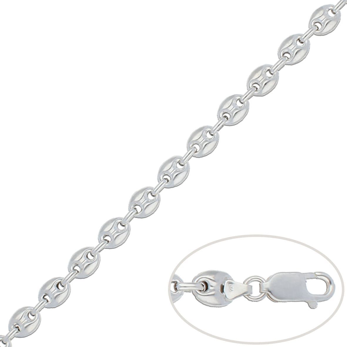 Con eslabones de calabrote, 19,50 cm de largo y 8 mm de ancho, con varios tamaños disponibles.
