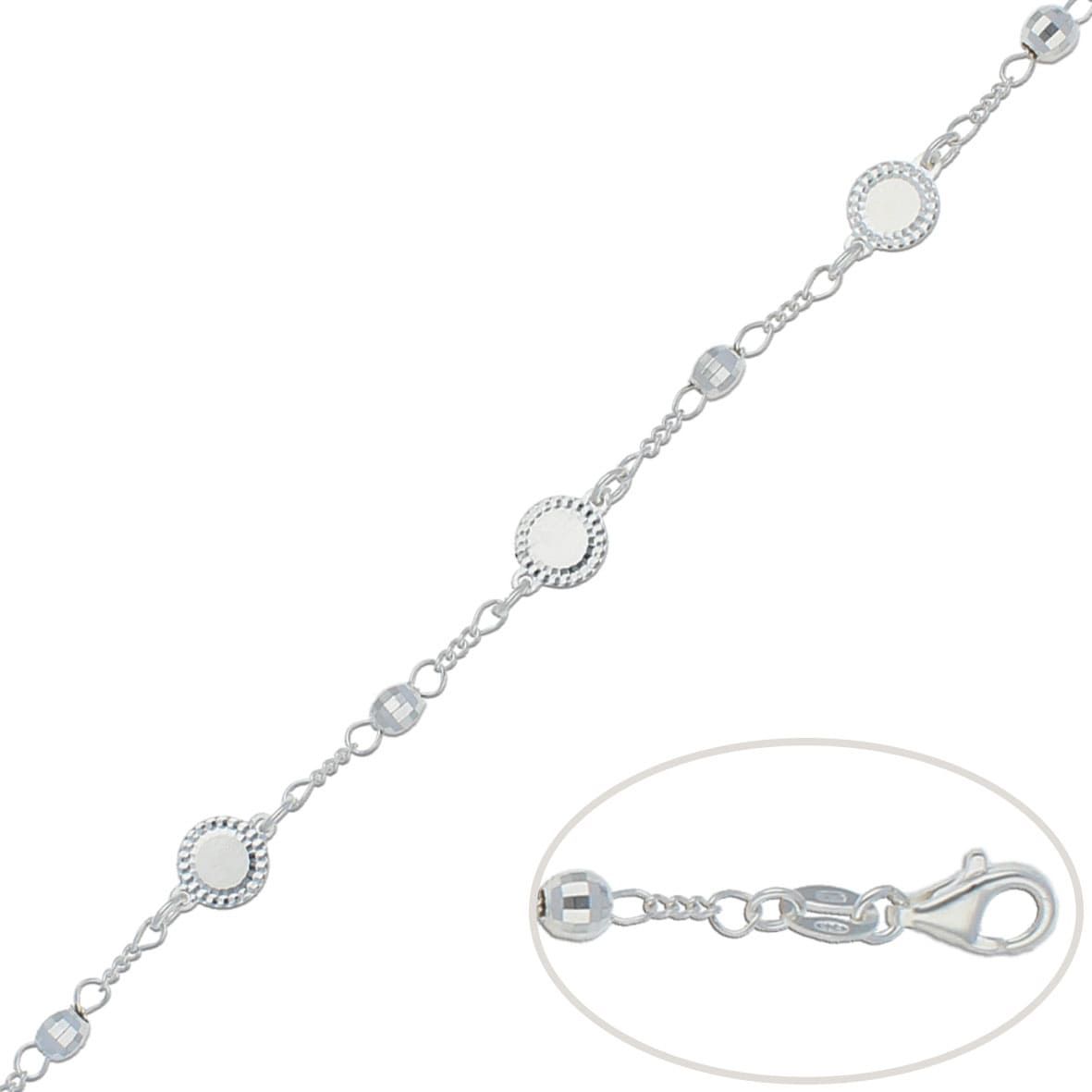 Enlaza bolas y chapas diamantadas, con un largo máximo de 18,50 cm con opción de colocar en varias posiciones hasta 16,50 cm.