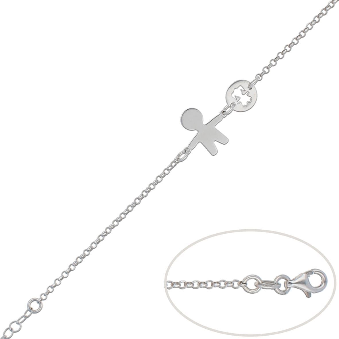 Con baño de rodio, niña y niño enlazados a cadena tipo rolot de 2,50 mm de ancho.