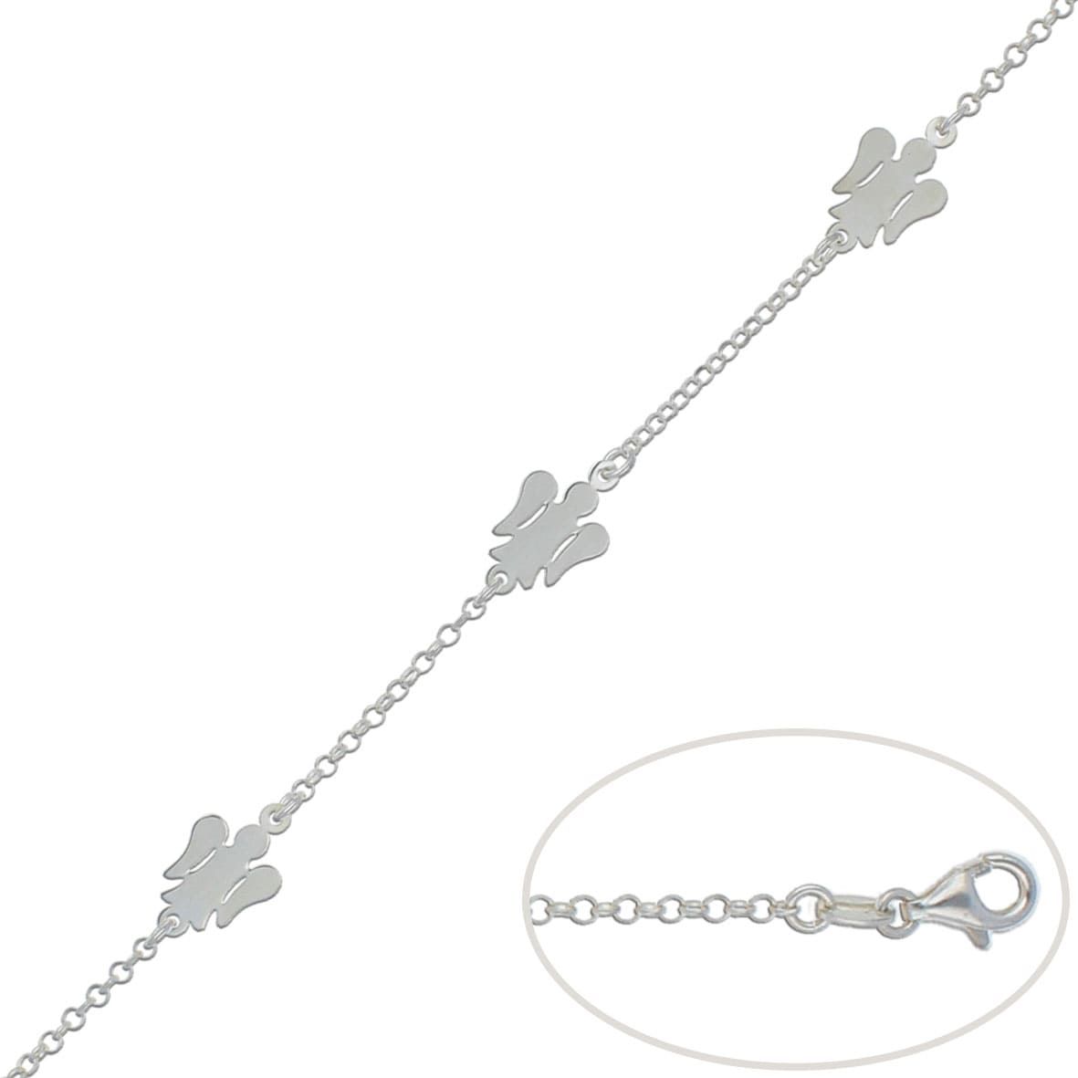 Con ángeles enlazados a cadena tipo rolot de 2 mm de ancho.