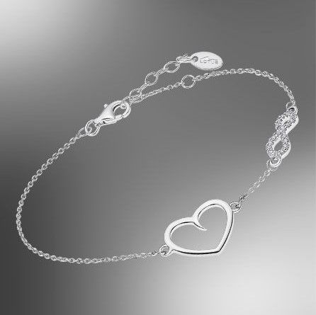 Pulsera con infinito de circonitas y corazón, en Plata de 1ªLey, 925 mm.