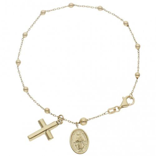 Con bolas de 3 mm, cruz y medalla milagrosa, y un contorno de muñeca de 19 cm, ajustable.