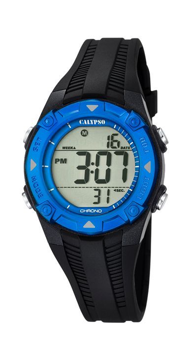 Reloj Calypso Digital con correa negra de caucho.