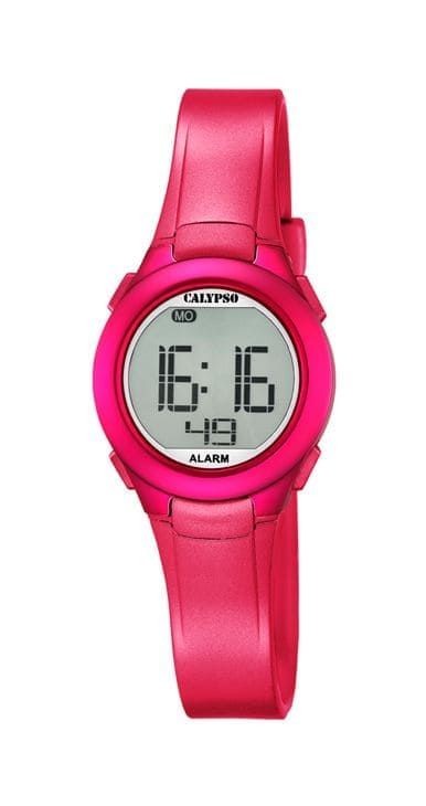 Con caja de plástico de 27,50 mm de diámetro, y correa de caucho con 16 mm de ancho.