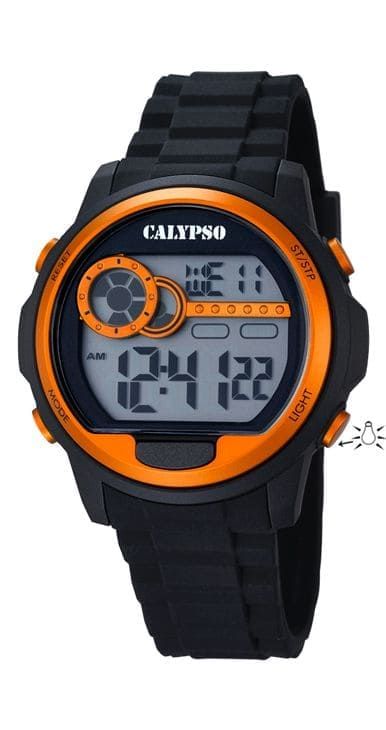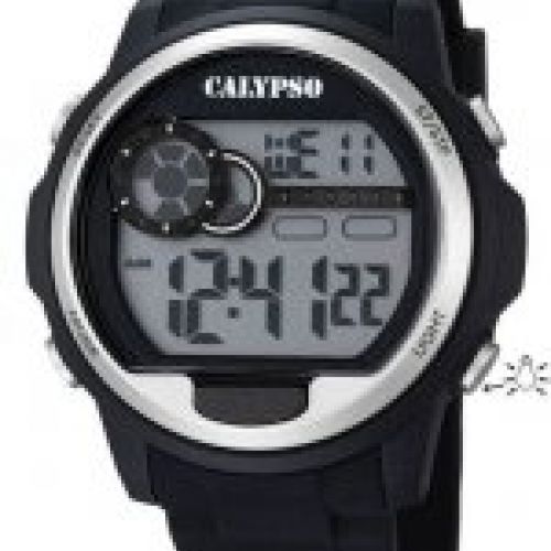 Reloj Calypso Digital en color negro con cerco color plateado.