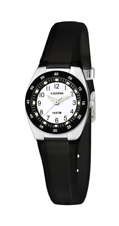 Reloj de Cuarzo, Analógico, caja de plástico y correa de caucho negra.