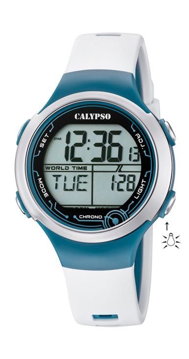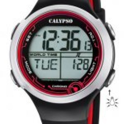 Reloj Calypso digital con correa de caucho en color fucsia.