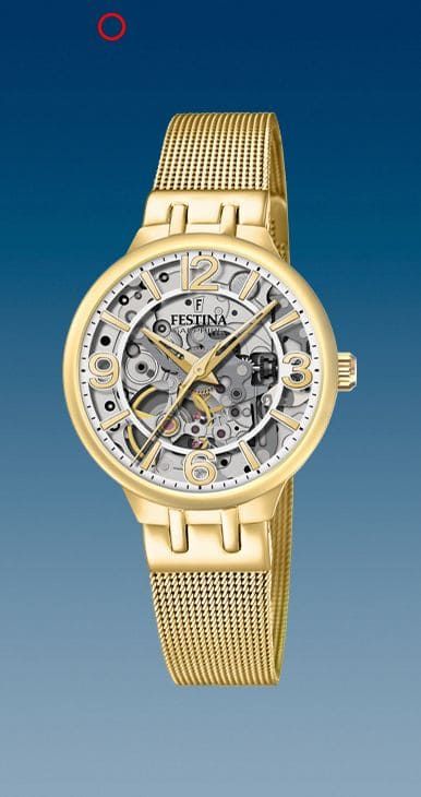 Con caja redonda de acero de 32,50 mm de diámetro y cristal Zafiro.